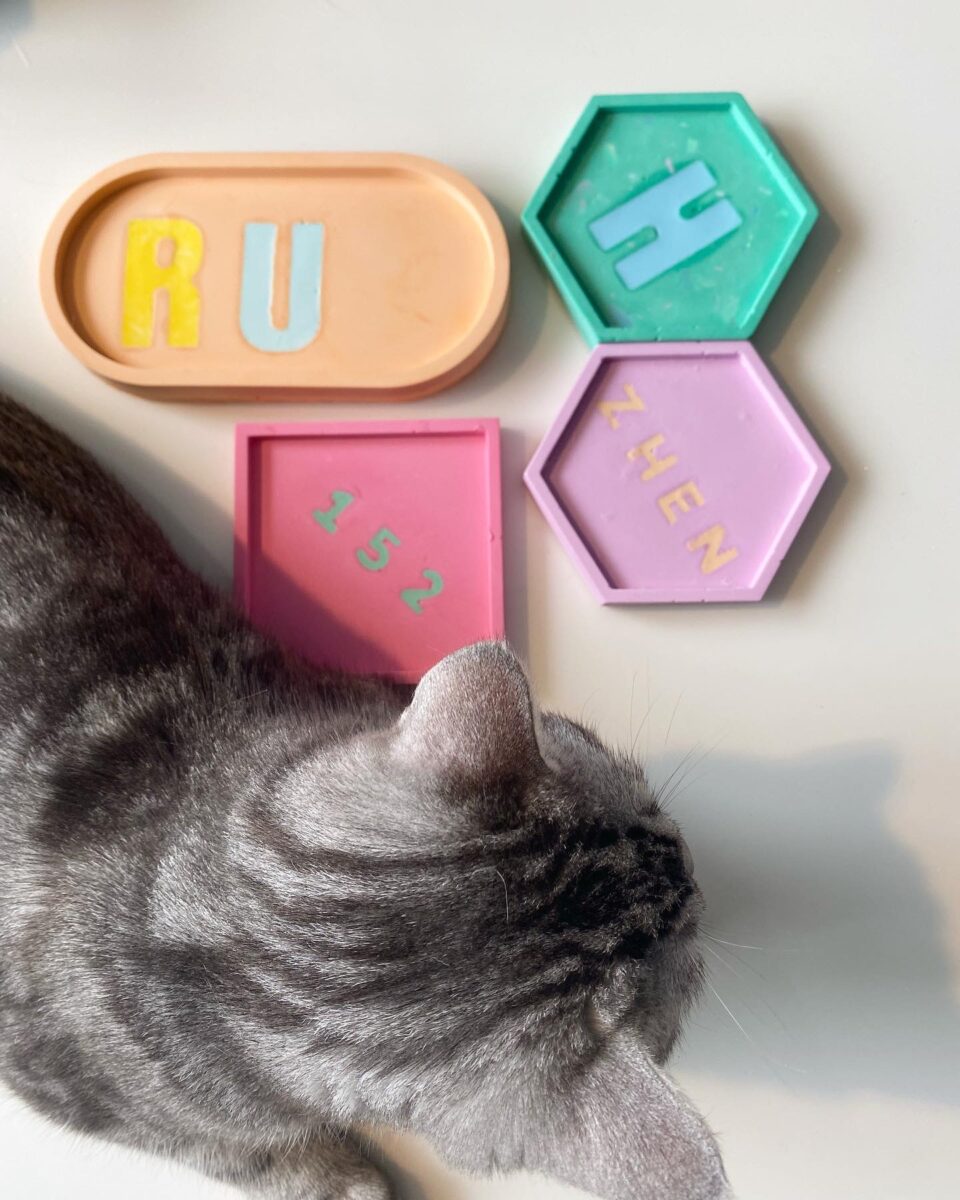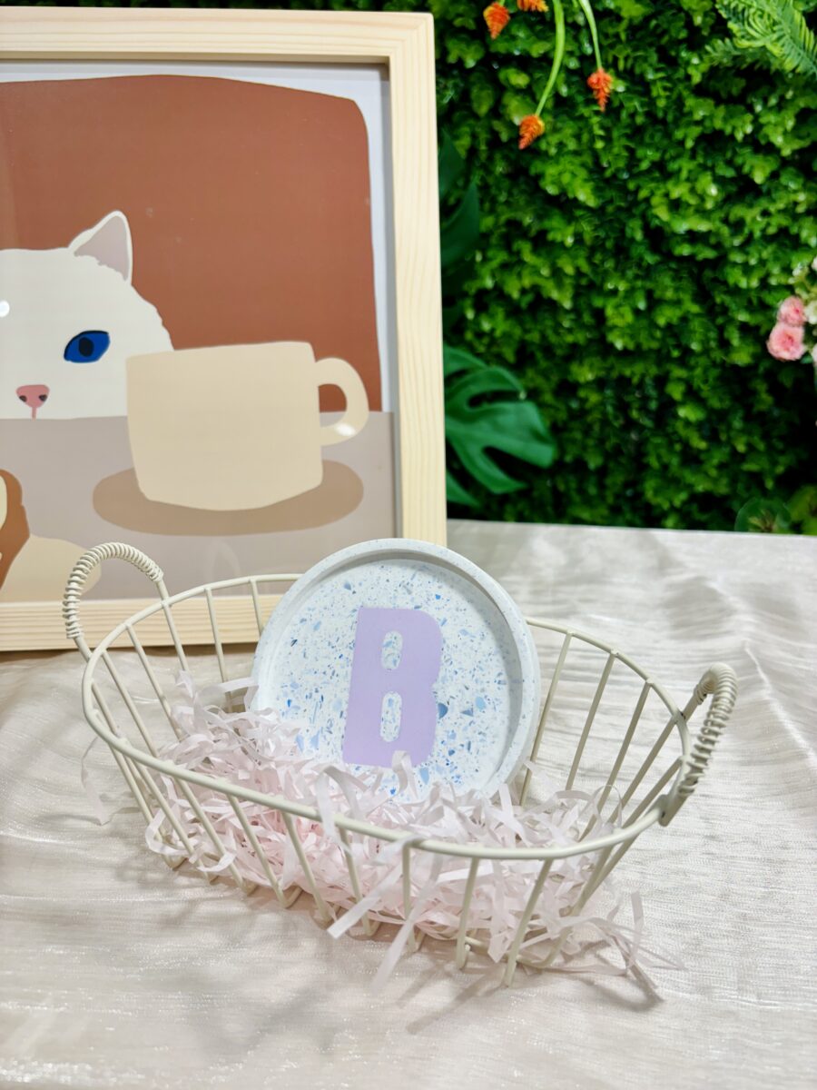 也歡迎你來客製化屬於自己的擴香石常見的客製化款式為:字母擴香杯墊、水磨石盤、繪畫飾品盤